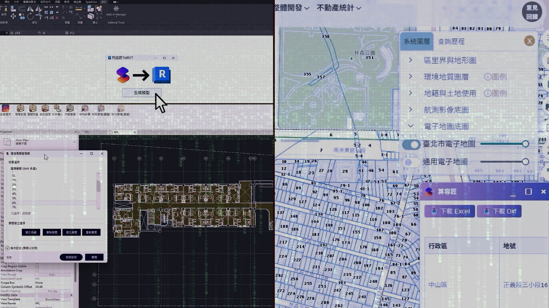 一、算容匠 LandGen,負責土地開發評估。 串接 ArkiTeki 法規資料庫與自研 LLM演算法,將原本高度依賴經驗的前期判斷轉化為可計算、可追溯的決策依據,以即時解析畸零地、容積移轉等複雜規則,快速產出最大開發效益評估。